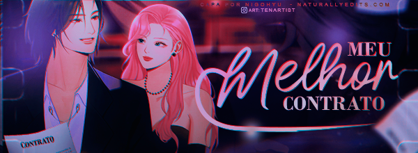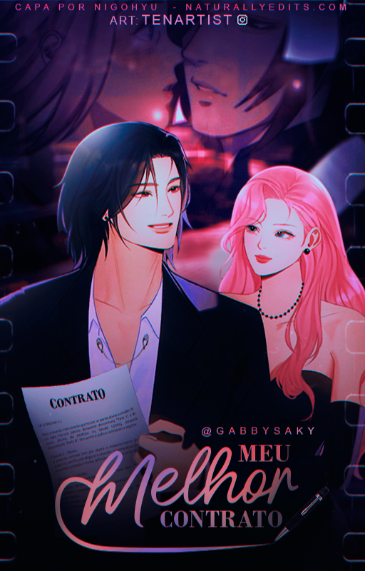 Desculpe a demora. eu fiquei um bom tempo casando uma fanartista que deixasse utilizar as imagens, e em seguida, ver se tal fanartista desenhada com os personagens do naruto, o labuta. bom, eu achei essa que em breve falarei um pouco. sobre a composição, não sabia quais cores (além de que não seriam claras, eu entendi que não seria um estilo clean) fiz nessas cores preto azul, roxo pois os personagens só me lembram essas cores. eu pus um papel de contrato na mão dele, pra fazer referencia. eu não entendi muito bem a sinopse, então não sabia exatamente se eles fariam um par romântico, mesmo assim arrisquei escolher uma arte que indique isso.